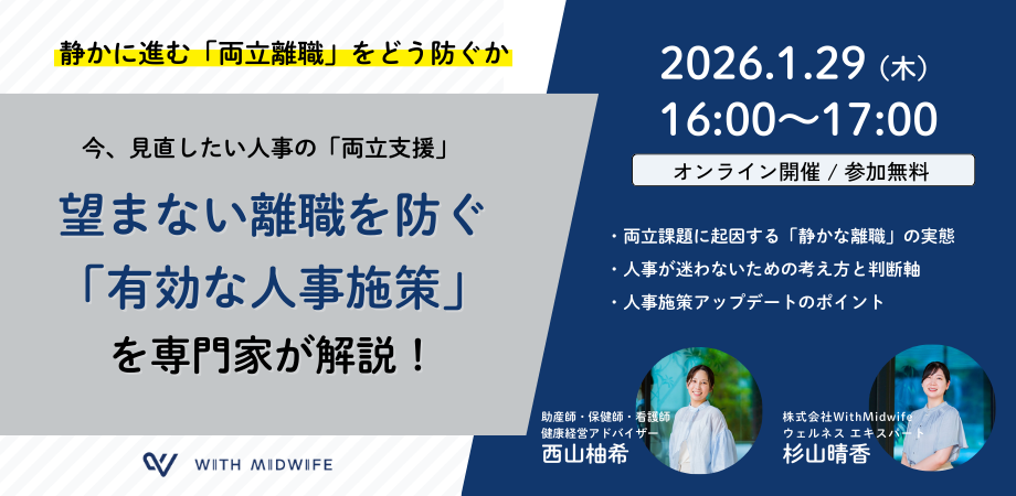 株式会社With Midwifeでは、2026年1月29日(水)に、人事・労務担当者様を対象とした無料ウェビナーを開催いたします。